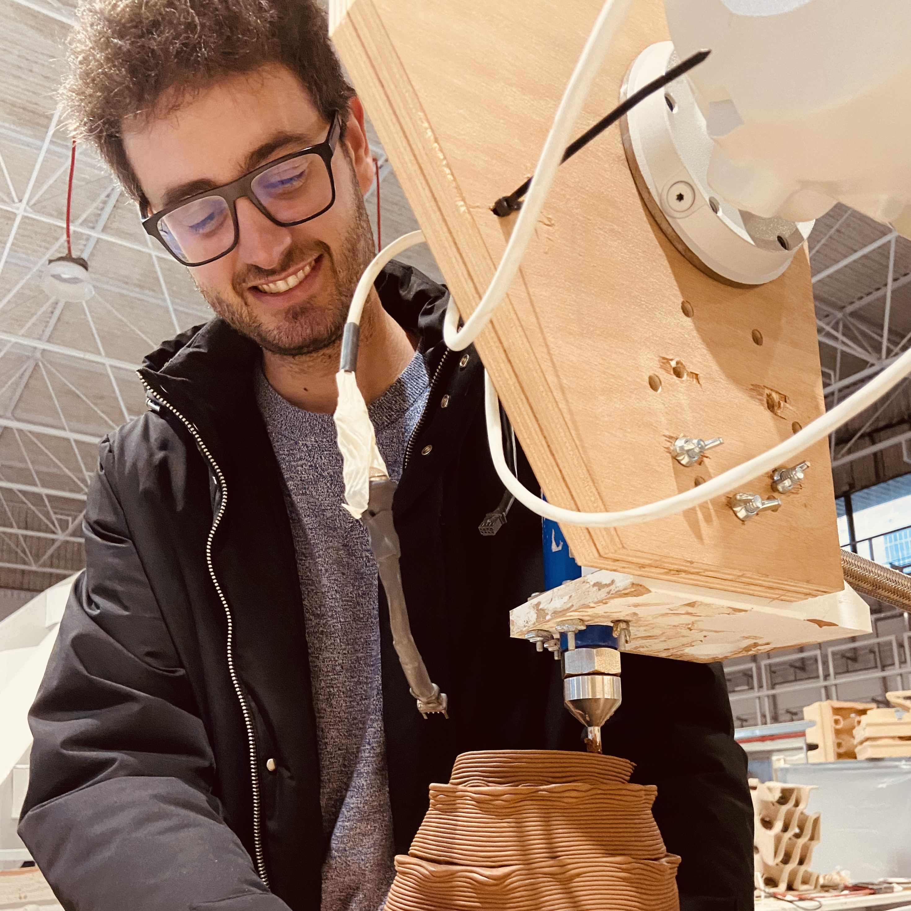Literally! Because Adriano is working especially with digital printing on clay. Clay that can be combined with humus, achieving a biodegradable material. But of course, this is not like melting plastic.