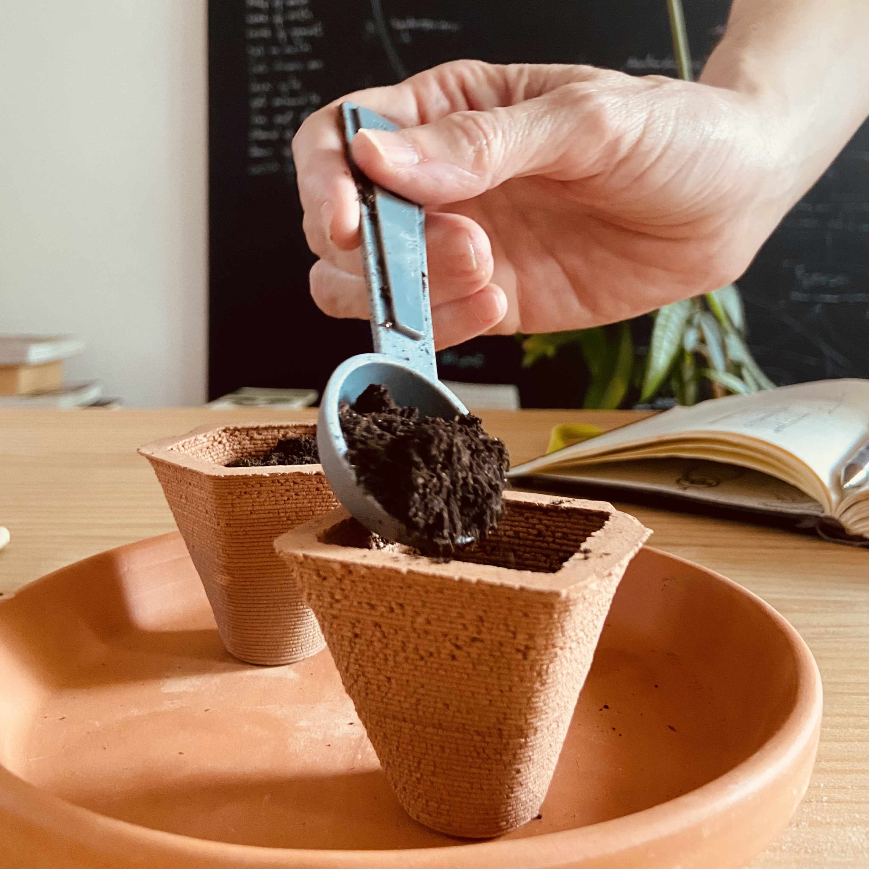 Así, podemos utilizar barro puro con un poco de agua para fabricar piezas de cerámica en 3D, por ejemplo una vermicompostera más fresca que las de plástico.
