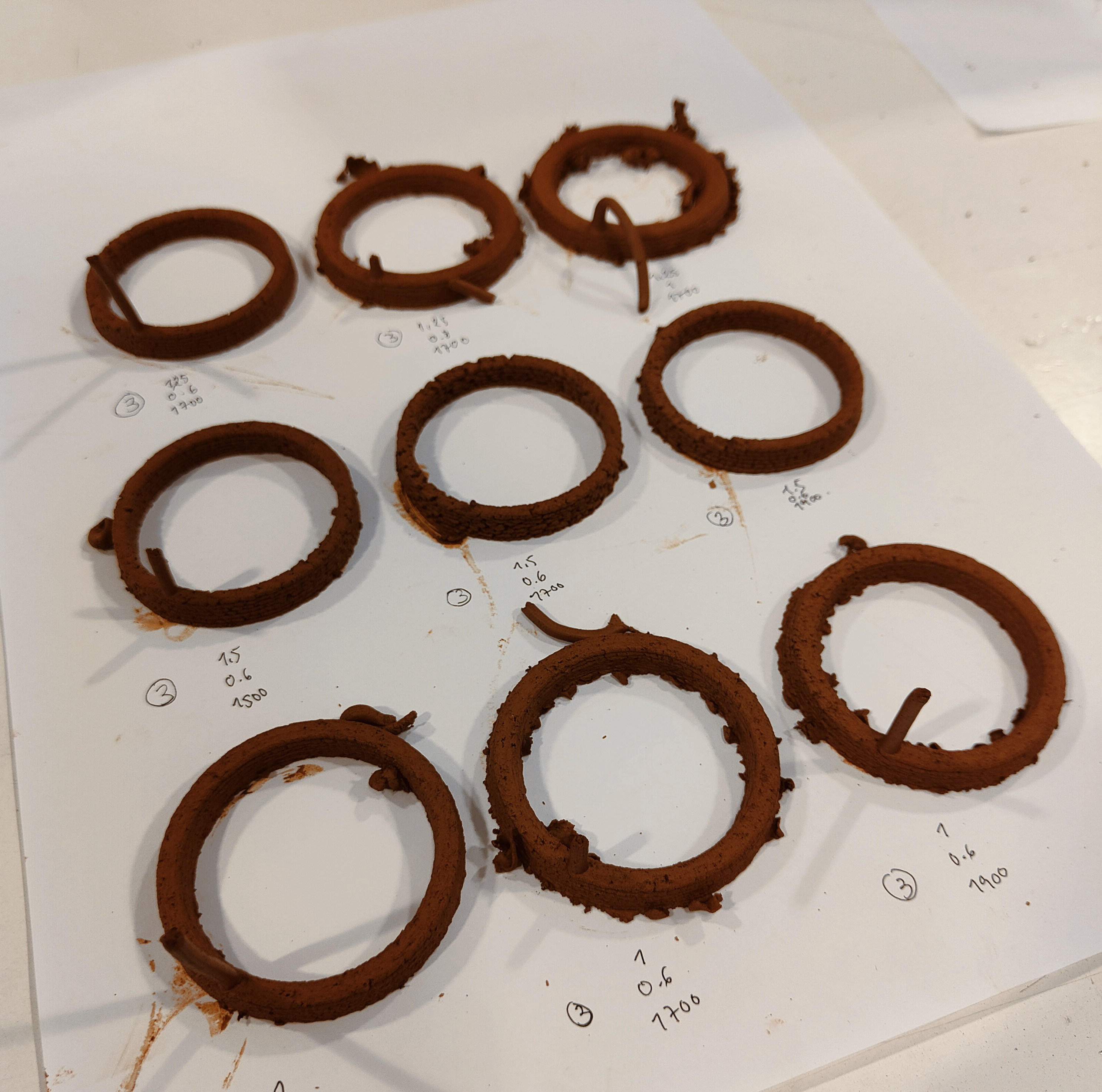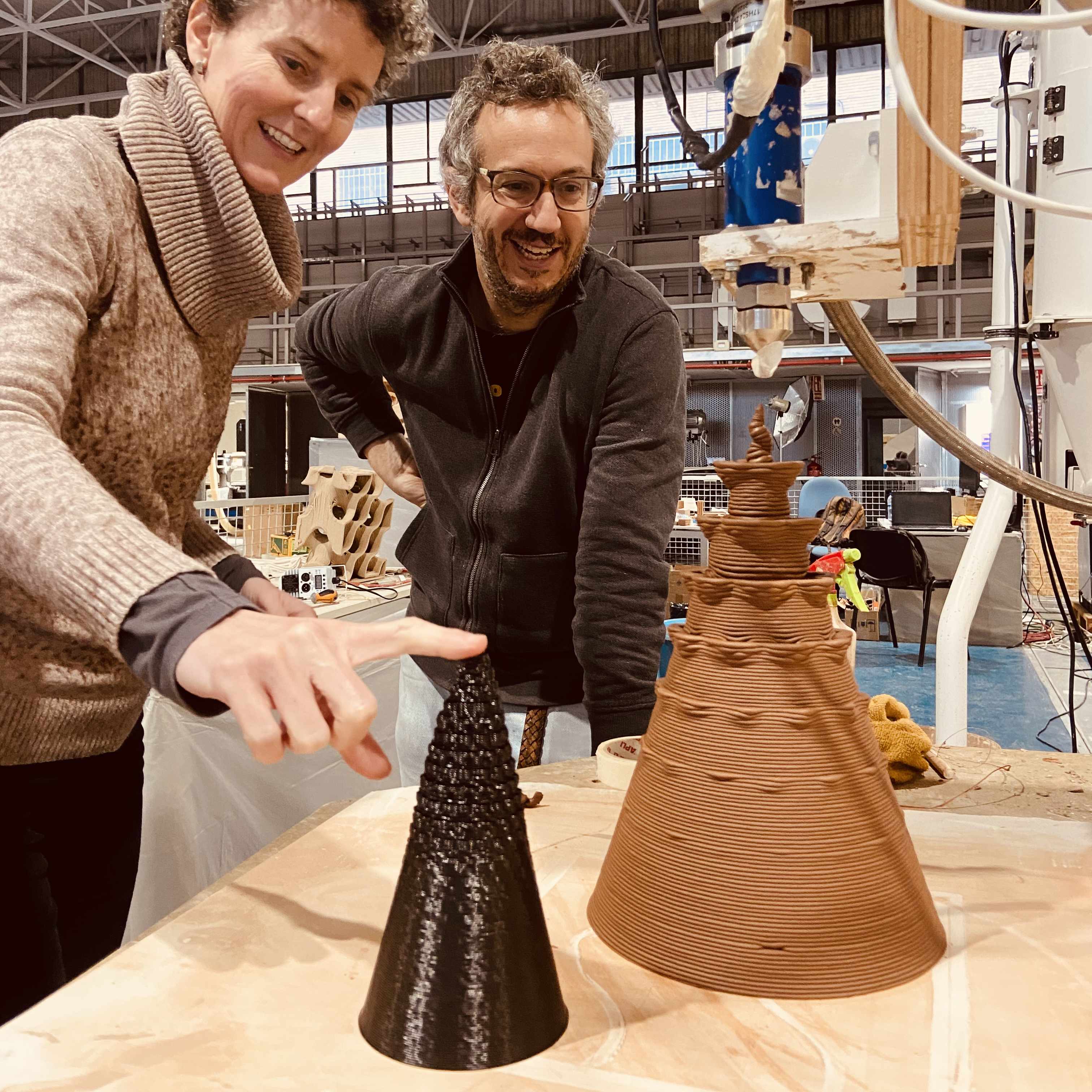 That's why Adriano started hacking cheap Anycubic-type printers by changing the thermal plastic extruder for a compressed air system with parts he made himself... and it worked! But only if the mixture has the right texture and ratio.